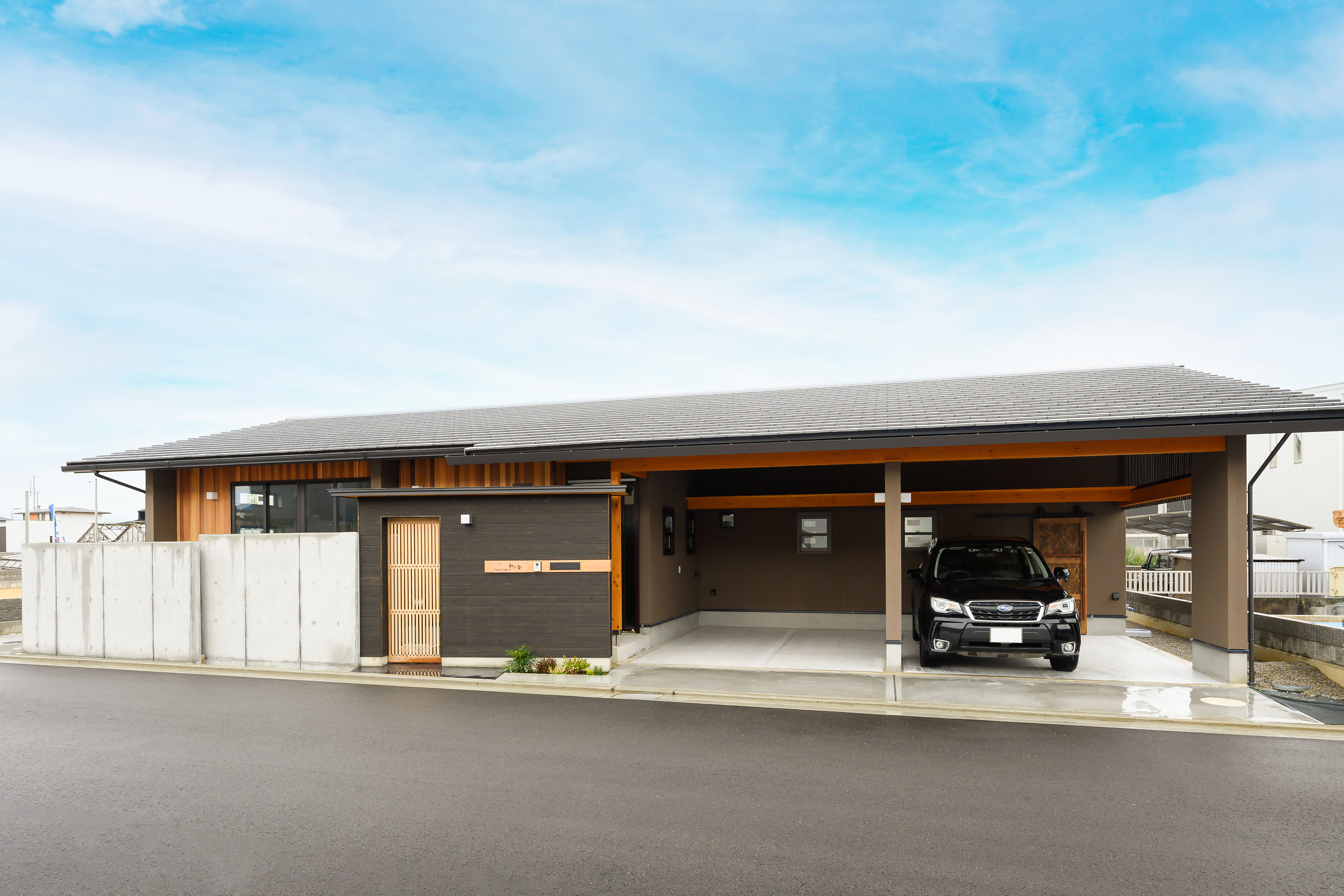 外観はガレージと一体化したデザイン。